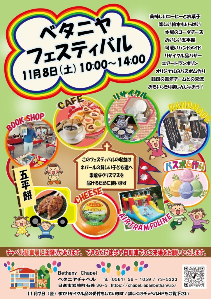 今年もベタニヤフェスティバルが11月8日(土)に開催されます。
