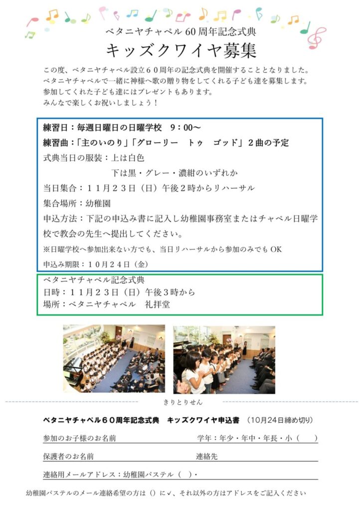 ベタニヤチャペル60周年記念式典キッズクワイヤ募集